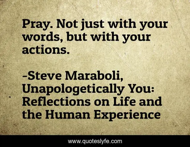 "Steve Maraboli, Unapologetically You: Reflections on Life and the Human Experience Quotes." Quoteslyfe.com, 2025. Sat. 06 Dec. 2025. <https://www.quoteslyfe.com/quote/Pray-Not-just-with-your-words-but-113352>.
