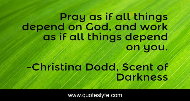 This page presents the quote "Pray as if all things depend on God, and work as if all things depend on you.". Author of this quote is Christina Dodd, Scent of Darkness. This quote is about dark, love, werewolf, demon, paranormal, scent-of-darkness, romance, christina-dodd, paranormal-romance,.