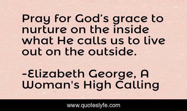 This page presents the quote "Pray for God’s grace to nurture on the inside what He calls us to live out on the outside.". Author of this quote is Elizabeth George, A Woman's High Calling. This quote is about christian, faithful, pray, god, inside, live, blessed, outside, nurture,.