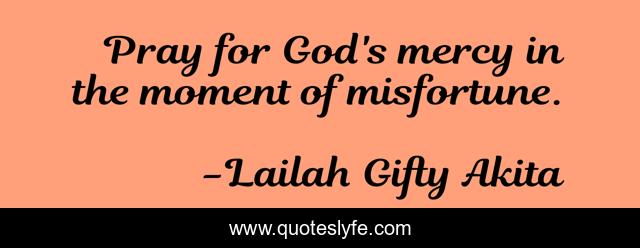 This page presents the quote "Pray for God's mercy in the moment of misfortune.". Author of this quote is Lailah Gifty Akita. This quote is about mercy, misfortune, christian, pray, god, advice, inner-strength, inspiration,.