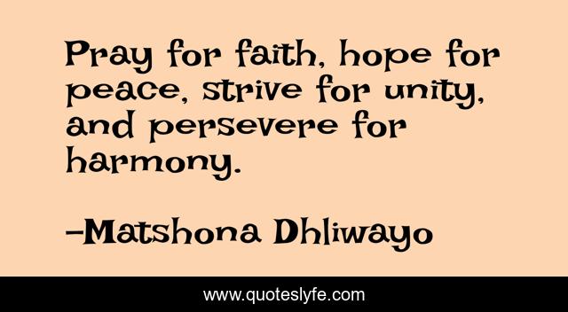 "Matshona Dhliwayo Quotes." Quoteslyfe.com, 2025. Tue. 09 Dec. 2025. <https://www.quoteslyfe.com/quote/Pray-for-faith-hope-for-peace-strive-48738>.