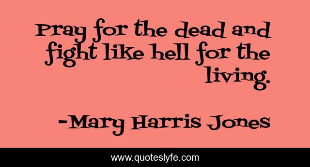 This page presents the quote "Pray for the dead and fight like hell for the living.". Author of this quote is Mary Harris Jones. This quote is about living, life, death, dead, prayer,.