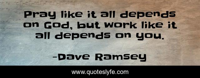 This page presents the quote "Pray like it all depends on God, but work like it all depends on you.". Author of this quote is Dave Ramsey. This quote is about work, hope, prayer,.