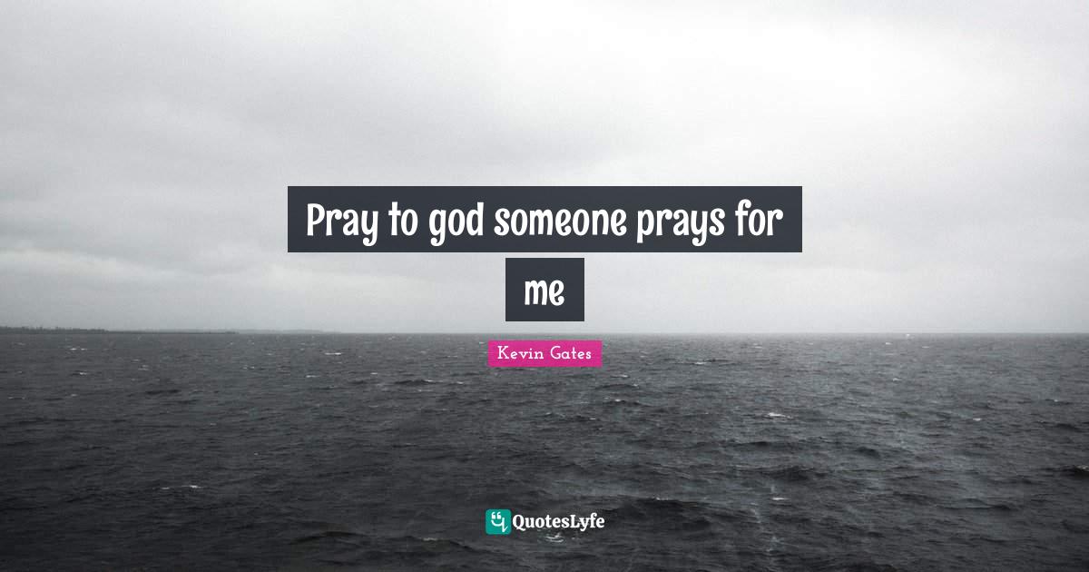 This page presents the quote "Pray to god someone prays for me". Author of this quote is Kevin Gates. This quote is about god, praying, pray for me, praying to god,.