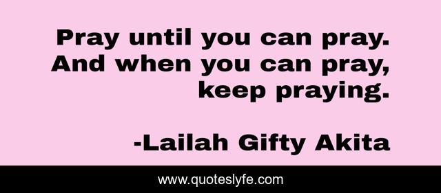 This page presents the quote "Pray until you can pray. And when you can pray, keep praying.". Author of this quote is Lailah Gifty Akita. This quote is about lessons-in-life, christian, pray, warfare-prayers, inspirational, life-philosophy, enthusiasm, praying,.