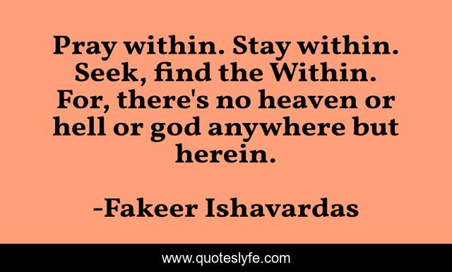 "Fakeer Ishavardas Quotes." Quoteslyfe.com, 2025. Fri. 05 Dec. 2025. <https://www.quoteslyfe.com/quote/Pray-within-Stay-within-Seek-find-the-121038>.