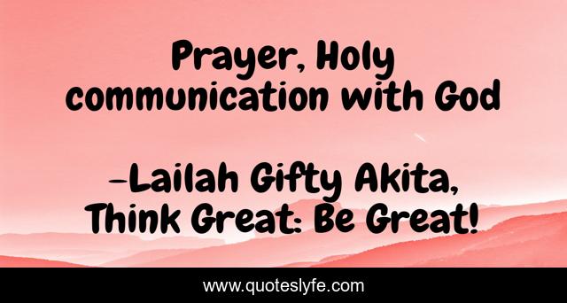 "Lailah Gifty Akita, Think Great: Be Great! Quotes." Quoteslyfe.com, 2025. Sun. 07 Dec. 2025. <https://www.quoteslyfe.com/quote/Prayer-Holy-communication-with-God-169195>.