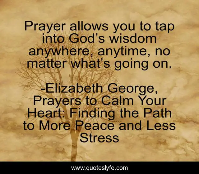 "Elizabeth George, Prayers to Calm Your Heart: Finding the Path to More Peace and Less Stress Quotes." Quoteslyfe.com, 2025. Sun. 07 Dec. 2025. <https://www.quoteslyfe.com/quote/Prayer-allows-you-to-tap-into-God-115123>.