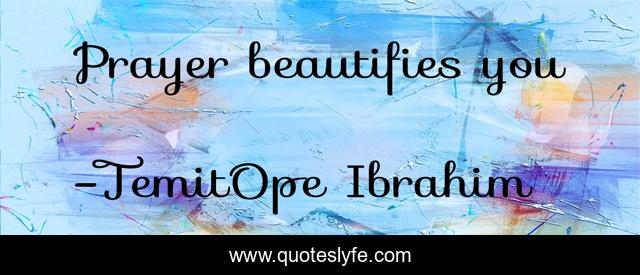 "TemitOpe Ibrahim Quotes." Quoteslyfe.com, 2025. Mon. 08 Dec. 2025. <https://www.quoteslyfe.com/quote/Prayer-beautifies-you-61156>.