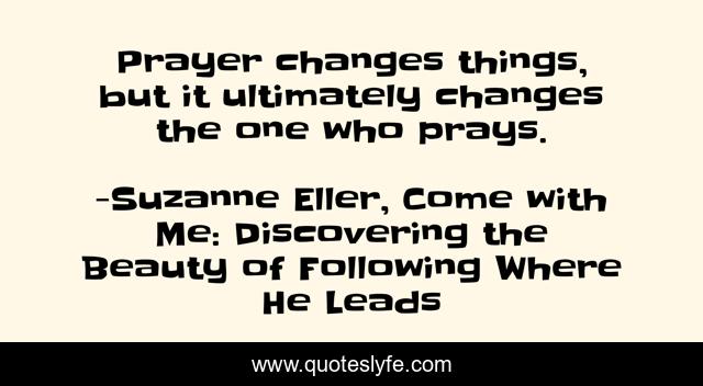 "Suzanne Eller, Come with Me: Discovering the Beauty of Following Where He Leads Quotes." Quoteslyfe.com, 2025. Fri. 05 Dec. 2025. <https://www.quoteslyfe.com/quote/Prayer-changes-things-but-it-ultimately-changes-114731>.