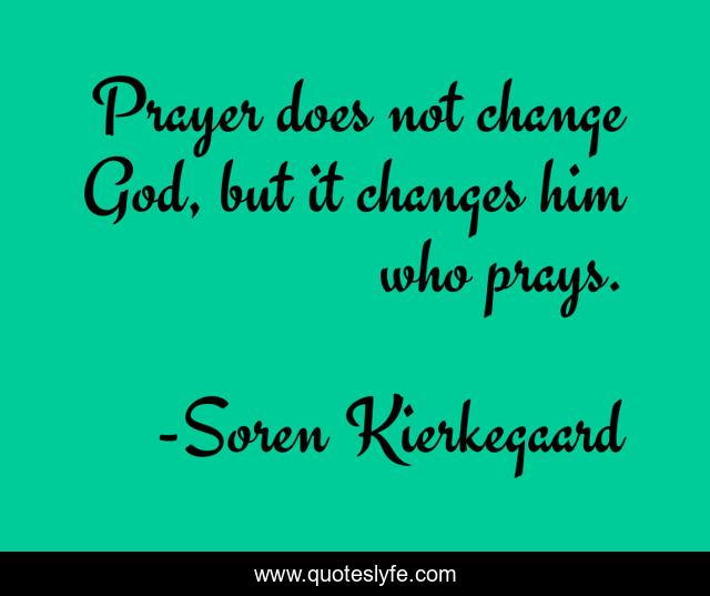 This page presents the quote "Prayer does not change God, but it changes him who prays.". Author of this quote is Soren Kierkegaard. This quote is about god, changes, change,.
