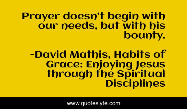 "David Mathis, Habits of Grace: Enjoying Jesus through the Spiritual Disciplines Quotes." Quoteslyfe.com, 2025. Fri. 05 Dec. 2025. <https://www.quoteslyfe.com/quote/Prayer-doesn-t-begin-with-our-needs-114590>.