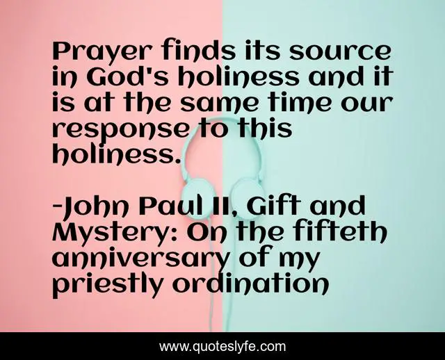 This page presents the quote "Prayer finds its source in God's holiness and it is at the same time our response to this holiness.". Author of this quote is John Paul II, Gift and Mystery: On the fifteth anniversary of my priestly ordination. This quote is about pray, god, holiness-of-god, praying, prayer,.