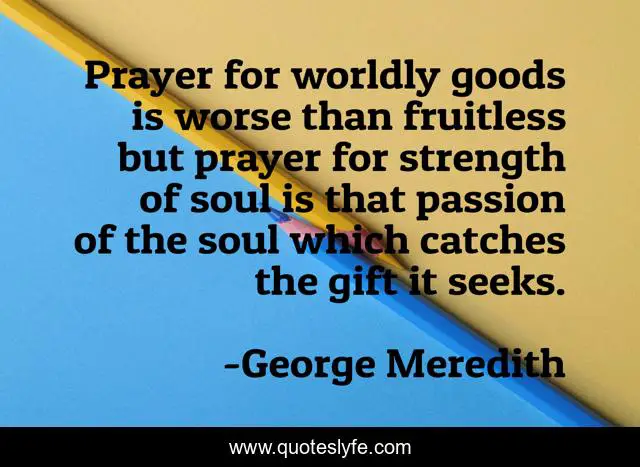This page presents the quote "Prayer for worldly goods is worse than fruitless but prayer for strength of soul is that passion of the soul which catches the gift it seeks.". Author of this quote is George Meredith. .
