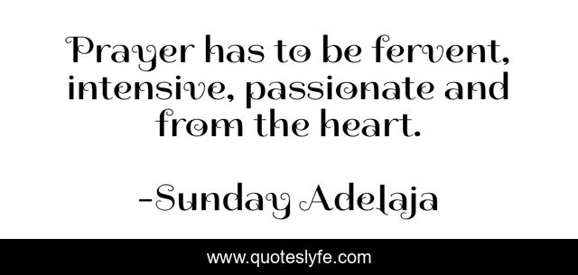 This page presents the quote "Prayer has to be fervent, intensive, passionate and from the heart.". Author of this quote is Sunday Adelaja. This quote is about fervent-prayer, passion,.