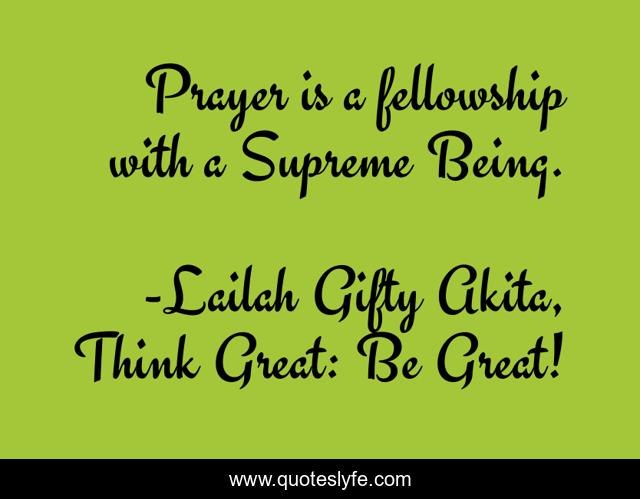 "Lailah Gifty Akita, Think Great: Be Great! Quotes." Quoteslyfe.com, 2025. Mon. 08 Dec. 2025. <https://www.quoteslyfe.com/quote/Prayer-is-a-fellowship-with-a-Supreme-107180>.