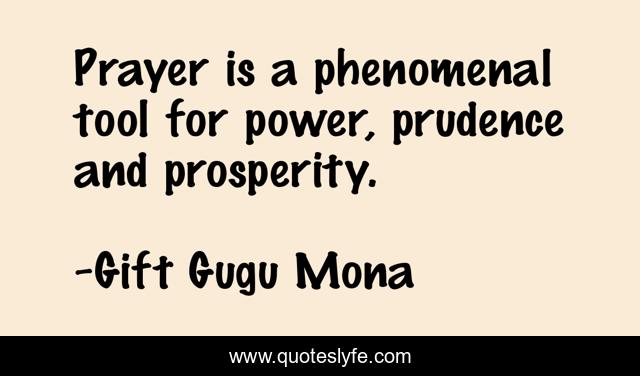 This page presents the quote "Prayer is a phenomenal tool for power, prudence and prosperity.". Author of this quote is Gift Gugu Mona. This quote is about prosperity, power, phenomenal, tool, prudence, prayer,.