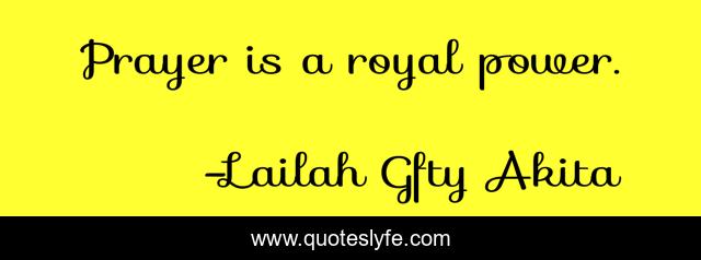 This page presents the quote "Prayer is a royal power.". Author of this quote is Lailah Gfty Akita. This quote is about royal, power, prayer,.