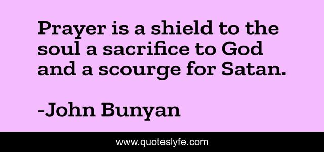 This page presents the quote "Prayer is a shield to the soul a sacrifice to God and a scourge for Satan.". Author of this quote is John Bunyan. .