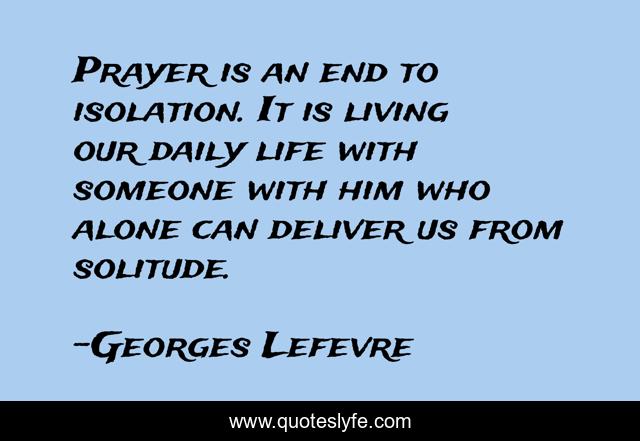 This page presents the quote "Prayer is an end to isolation. It is living our daily life with someone with him who alone can deliver us from solitude.". Author of this quote is Georges Lefevre. .