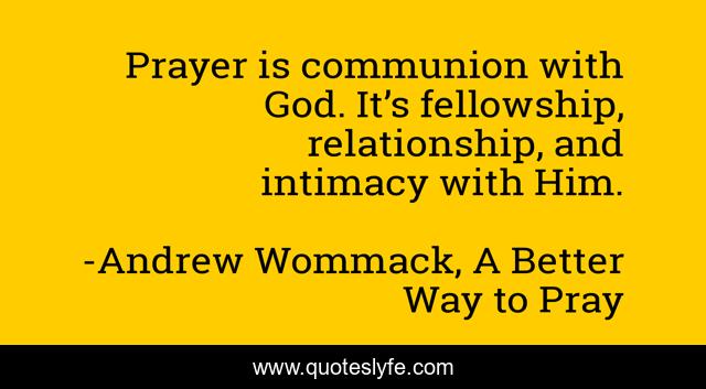 This page presents the quote "Prayer is communion with God. It’s fellowship, relationship, and intimacy with Him.". Author of this quote is Andrew Wommack, A Better Way to Pray. This quote is about fellowship, god, prayer,.