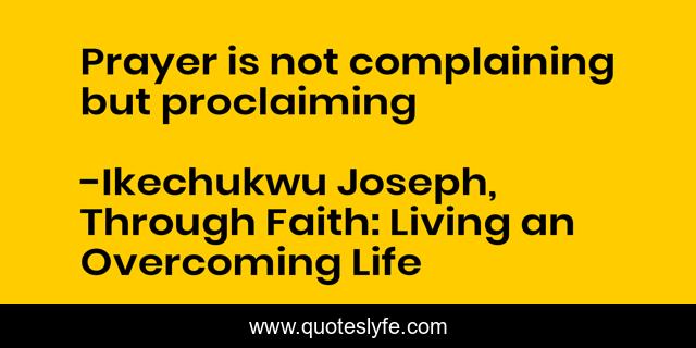 "Ikechukwu Joseph, Through Faith: Living an Overcoming Life Quotes." Quoteslyfe.com, 2025. Fri. 05 Dec. 2025. <https://www.quoteslyfe.com/quote/Prayer-is-not-complaining-but-proclaiming-84862>.
