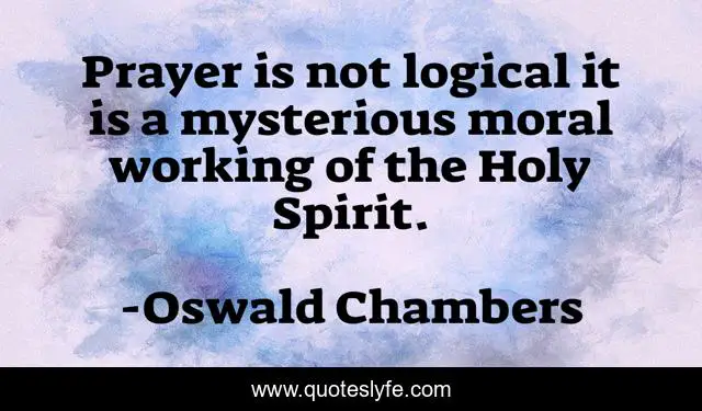 This page presents the quote "Prayer is not logical it is a mysterious moral working of the Holy Spirit.". Author of this quote is Oswald Chambers. .
