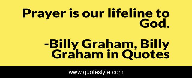 This page presents the quote "Prayer is our lifeline to God.". Author of this quote is Billy Graham, Billy Graham in Quotes. This quote is about billy-graham, prayer,.