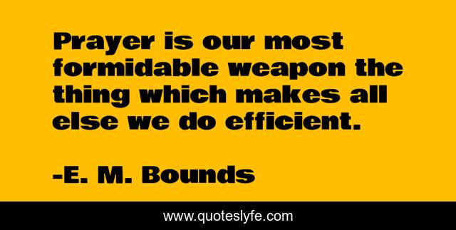 This page presents the quote "Prayer is our most formidable weapon the thing which makes all else we do efficient.". Author of this quote is E. M. Bounds. .