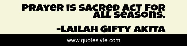"Lailah Gifty Akita Quotes." Quoteslyfe.com, 2025. Sat. 06 Dec. 2025. <https://www.quoteslyfe.com/quote/Prayer-is-sacred-act-for-all-seasons-114754>.