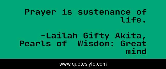 "Lailah Gifty Akita, Pearls of Wisdom: Great mind Quotes." Quoteslyfe.com, 2025. Mon. 08 Dec. 2025. <https://www.quoteslyfe.com/quote/Prayer-is-sustenance-of-life-85509>.