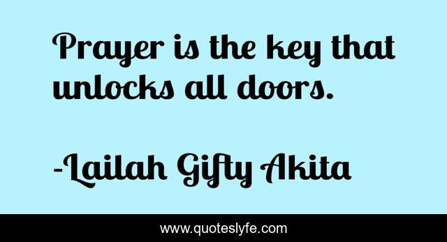 This page presents the quote "Prayer is the key that unlocks all doors.". Author of this quote is Lailah Gifty Akita. This quote is about answered-prayer, prayers, prayers-answered, prayerful-habits, prayers-of-the-heart, answers-to-prayers, prayer, prayer-life, answered-prayers,.