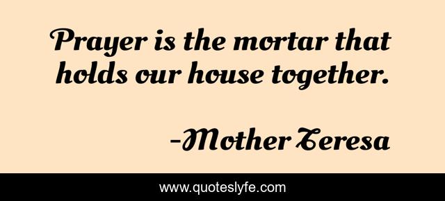 This page presents the quote "Prayer is the mortar that holds our house together.". Author of this quote is Mother Teresa. This quote is about enthusiasm, inspirational,.
