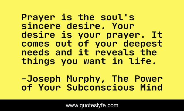 This page presents the quote "Prayer is the soul's sincere desire. Your desire is your prayer. It comes out of your deepest needs and it reveals the things you want in life.". Author of this quote is Joseph Murphy, The Power of Your Subconscious Mind. This quote is about desire, prayer,.