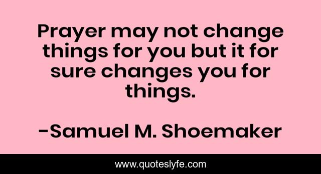 "Samuel M. Shoemaker Quotes." Quoteslyfe.com, 2025. Fri. 05 Dec. 2025. <https://www.quoteslyfe.com/quote/Prayer-may-not-change-things-for-you-273720>.