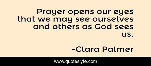 This page presents the quote "Prayer opens our eyes that we may see ourselves and others as God sees us.". Author of this quote is Clara Palmer. .