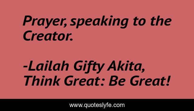 "Lailah Gifty Akita, Think Great: Be Great! Quotes." Quoteslyfe.com, 2025. Mon. 08 Dec. 2025. <https://www.quoteslyfe.com/quote/Prayer-speaking-to-the-Creator-169182>.