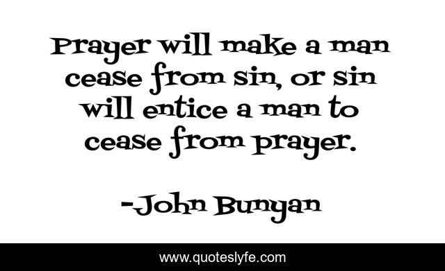 This page presents the quote "Prayer will make a man cease from sin, or sin will entice a man to cease from prayer.". Author of this quote is John Bunyan. This quote is about spiritual, bible, biblical, god, prayer, jesus, church,.