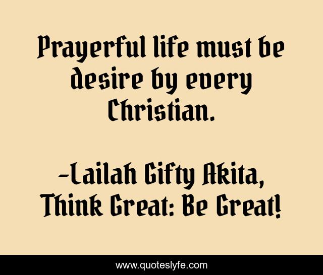 "Lailah Gifty Akita, Think Great: Be Great! Quotes." Quoteslyfe.com, 2025. Mon. 08 Dec. 2025. <https://www.quoteslyfe.com/quote/Prayerful-life-must-be-desire-by-every-85650>.
