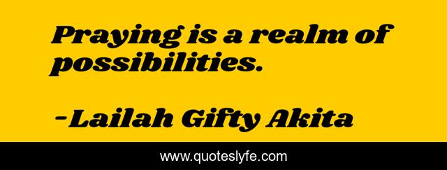 "Lailah Gifty Akita Quotes." Quoteslyfe.com, 2025. Fri. 05 Dec. 2025. <https://www.quoteslyfe.com/quote/Praying-is-a-realm-of-possibilities-19768>.