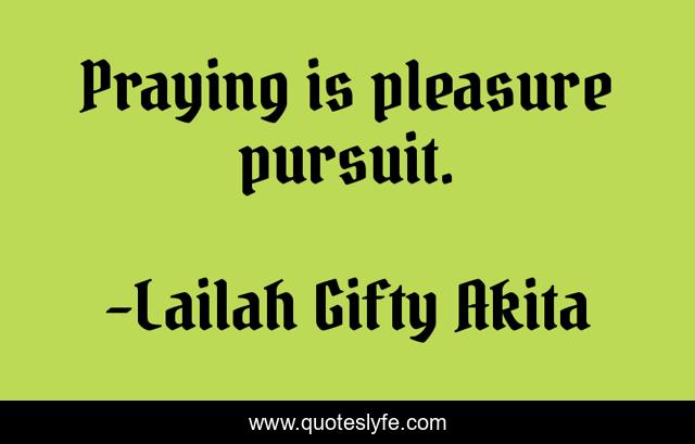 This page presents the quote "Praying is pleasure pursuit.". Author of this quote is Lailah Gifty Akita. This quote is about christian-life, praying, lailah-gifty-akita-affirmations,.