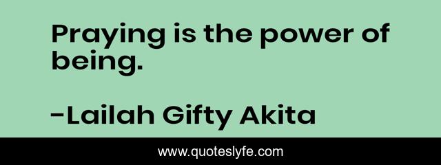 "Lailah Gifty Akita Quotes." Quoteslyfe.com, 2025. Fri. 05 Dec. 2025. <https://www.quoteslyfe.com/quote/Praying-is-the-power-of-being-84832>.
