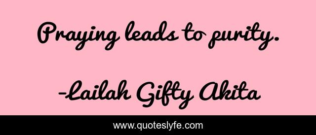 This page presents the quote "Praying leads to purity.". Author of this quote is Lailah Gifty Akita. This quote is about inspiring, christian, religious-faith, purity, life-philosophy, praying,.