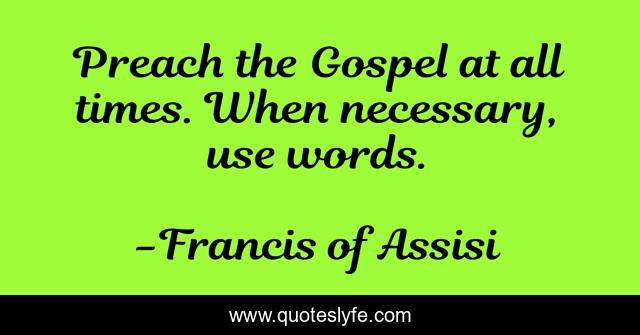 This page presents the quote "Preach the Gospel at all times. When necessary, use words.". Author of this quote is Francis of Assisi. This quote is about gospel, diligence, example, preach,.