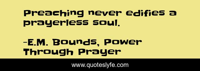 This page presents the quote "Preaching never edifies a prayerless soul.". Author of this quote is E.M. Bounds, Power Through Prayer. This quote is about preaching, prayer,.