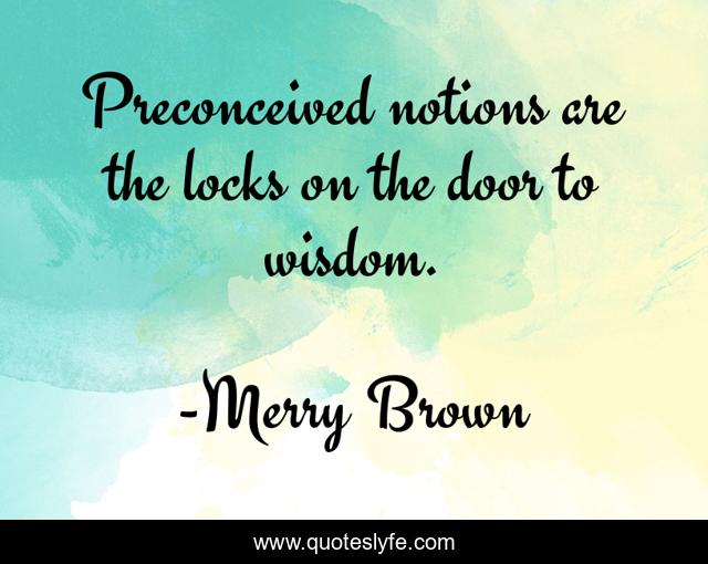 This page presents the quote "Preconceived notions are the locks on the door to wisdom.". Author of this quote is Merry Brown. .