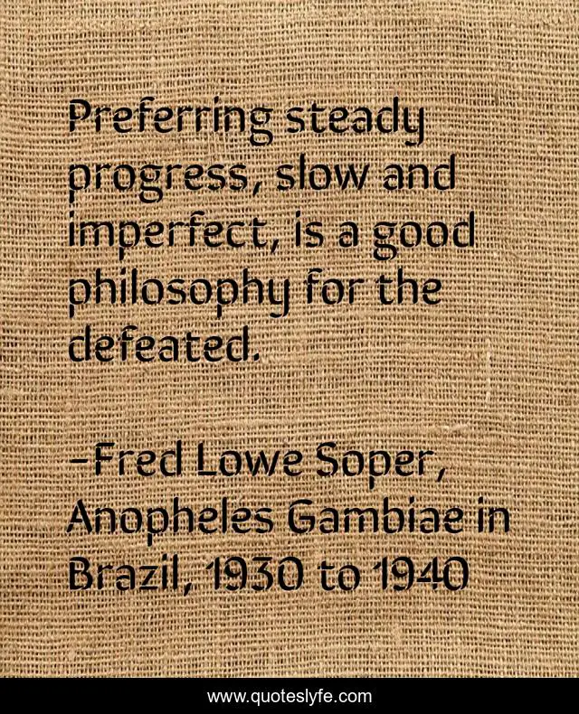 "Fred Lowe Soper, Anopheles Gambiae in Brazil, 1930 to 1940 Quotes." Quoteslyfe.com, 2025. Sun. 14 Dec. 2025. <https://www.quoteslyfe.com/quote/Preferring-steady-progress-slow-and-imperfect-is-64928>.