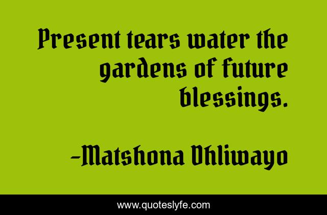 "Matshona Dhliwayo Quotes." Quoteslyfe.com, 2025. Mon. 08 Dec. 2025. <https://www.quoteslyfe.com/quote/Present-tears-water-the-gardens-of-future-83672>.
