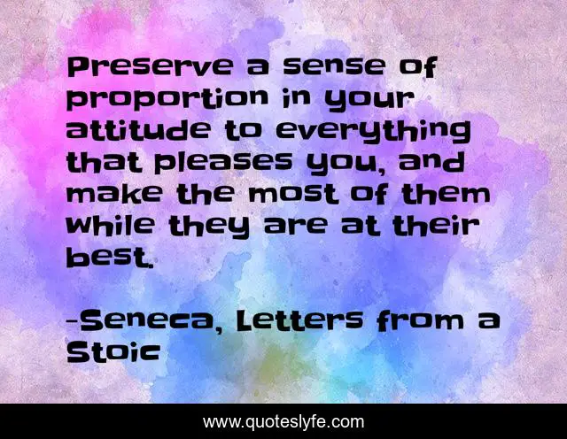 This page presents the quote "Preserve a sense of proportion in your attitude to everything that pleases you, and make the most of them while they are at their best.". Author of this quote is Seneca, Letters from a Stoic. .