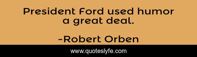 This page presents the quote "President Ford used humor a great deal.". Author of this quote is Robert Orben. This quote is about president, great, ford,.